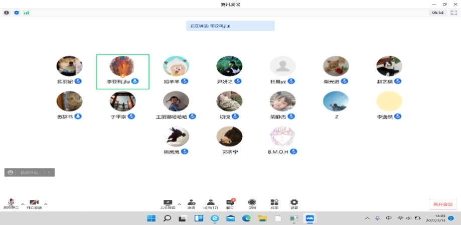 3月13日下午,海燕论坛策略研究2020级文博班召开了线上防疫导学主题班会。会议由班主任李亚利老师主持,班级全体同学参与了此次会议。会议伊始,李亚利老师首先针对校内的生活物资供应,同学们的日常饮食配送等方面的内容作了详细介绍。强调了个人隔离防护的注意点:宿舍走廊也要戴好口罩,口罩要勤更换;注意个人卫生,勤洗手;做好健康观察、核酸检测;同学间互帮互助,相互鼓励等。随后,李亚利老师又统计了全班的志愿者人数,鼓励大家在确保自身安全的情况下为学校防疫做出贡献,对同学们积极向上的心态给予了肯定。最后,李亚利老师向同学们提出了一些学习建议,对学年论文资料查找的一系列问题作出了指导,提醒大家即使线上网课,也要认真对待,不可松懈。